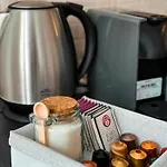 - ❓¿Hay una cocina disponible en el alojamiento para uso de los huéspedes?Sí, el alojamiento está equipado con una cocina completa y ofrece también un horno de microondas, un hervidor eléctrico y menaje de cocina.
